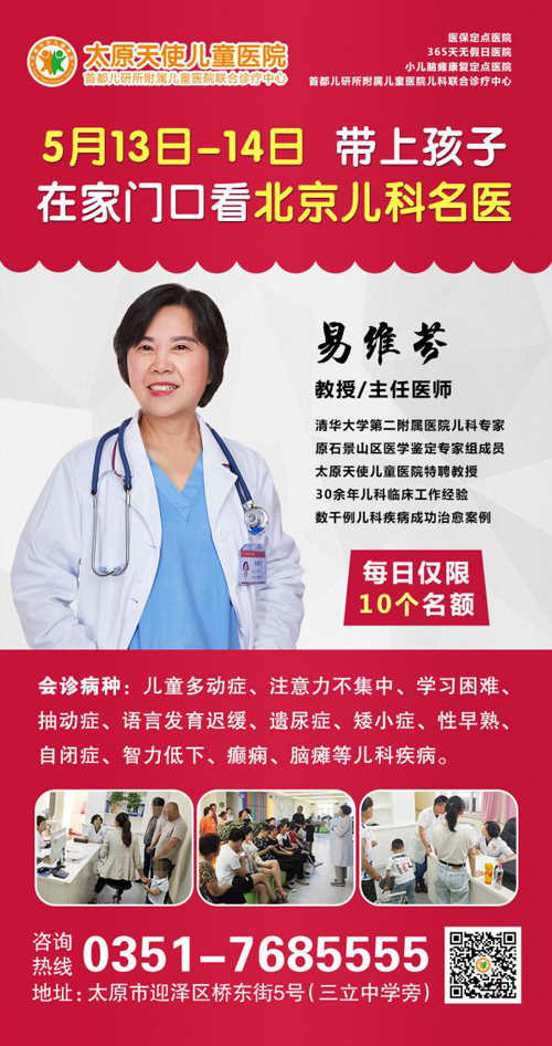 为了让更多山西地区患儿享受到优质的专家资源,同时解决“看病难,看儿科专家更难”的问题,太原天使儿童医院于5月13-14日,特邀北京清华大学第二附属医院易维芬教授来院会诊。