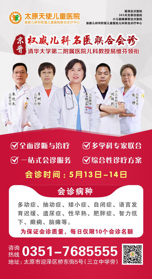 看名医机会难得,专家会诊名额有限,每天就10名哦,家长们一定要抓住此次专家来晋的机会,让孩子早日接受权威专家的治疗,早日恢复健康!