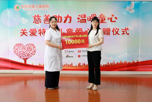 随后,太原市福利生产中心林主任向太原天使儿童医院现场捐赠了10000万的爱心款,现场响起了热烈的掌声,大家纷纷为太原市福利生产中心的善举点赞。