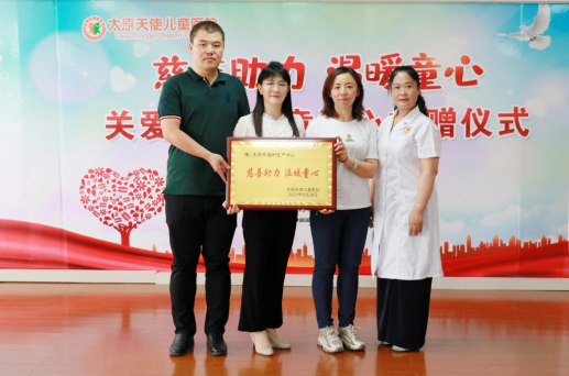为了表达感恩之心,太原天使儿童医院将一面写有“慈善助力、温暖童心”的牌匾赠予太原市福利生产中心,希望双方可以把对孩子的这份关爱传递下去,帮助更多需要帮助的人。